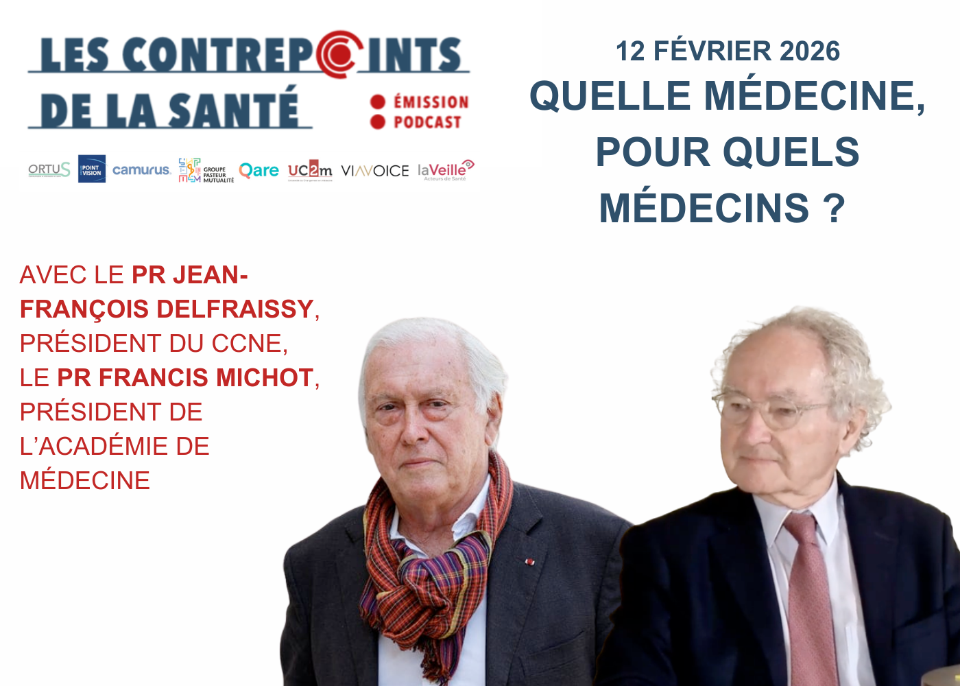 Les Contrepoints de la Santé ont reçu, le 12 février à la Villa M, à Paris, le Pr Francis Michot, nouveau président de l'Académie de médecine, et le Pr Jean-François Delfraissy, président du Comité consultatif national d’éthique pour les sciences de la vie et de la santé (CCNE).