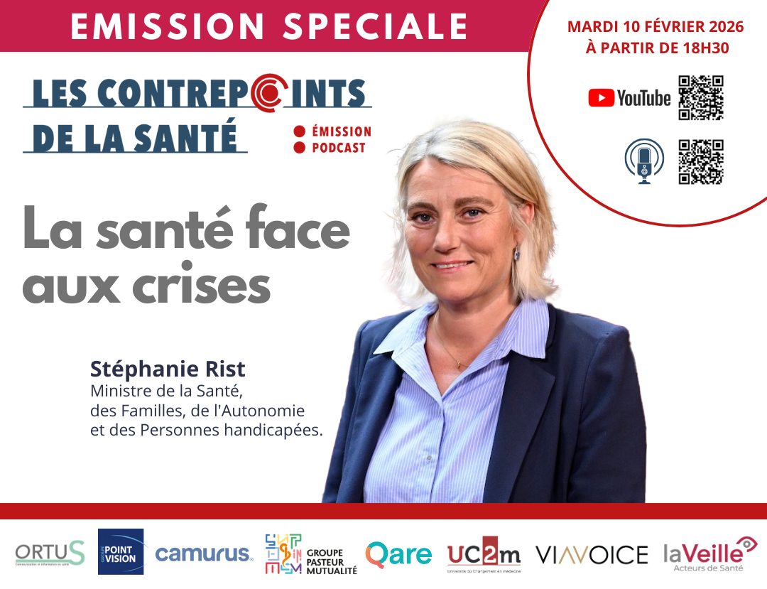 Émission spéciale des Contrepoints de la Santé, 10 février 2026, avec Stéphanie Rist, Ministre de la Santé, des Familles, de l’Autonomie et des Personnes handicapées, qui nous fait l'honneur de sa présence dans cette émission enregistrée le matin et diffusée dès 18 h sur la chaîne Youtube des Contrepoints.